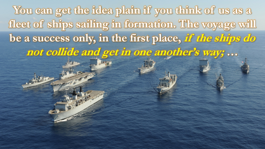 Kindness toward other people is only concerned with the first thing: not colliding with others. “When a man says about something he wants to do, ‘It can’t be wrong because it doesn’t do anyone else any harm,’ he is thinking only of the first thing. He is thinking it does not matter what his ship is like inside provided that he does not run into the next ship.”